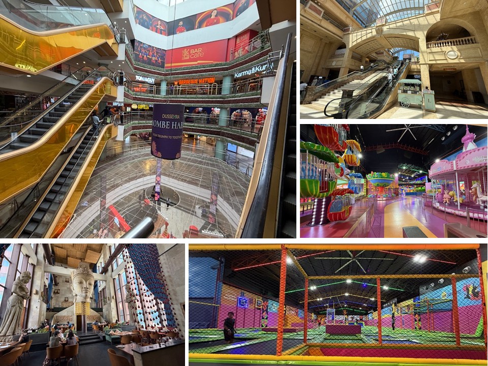 近代的なモールには、アディダスやソニーといった国際的ブランドが並び、ボウリング場や巨大なトランポリンパーク、回転木馬まであります。