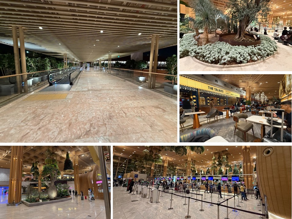 2023年に開業したこの新ターミナルのコンセプトは「庭園の中のターミナル(Terminal in a Garden)」。ニューヨークの建築事務所SOMが手掛けた設計で、広大な大理石の床の通路には本物の大木や白い花々をあしらった室内庭園が点在しています。