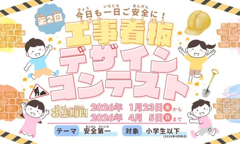 本コンテストは、工事現場に対して「こわい」「危険」といったイメージを持たれがちな中で、子どもたちの描く心温まるデザインを通して、工事現場を見る人が笑顔になれることを目的とした取り組みです。